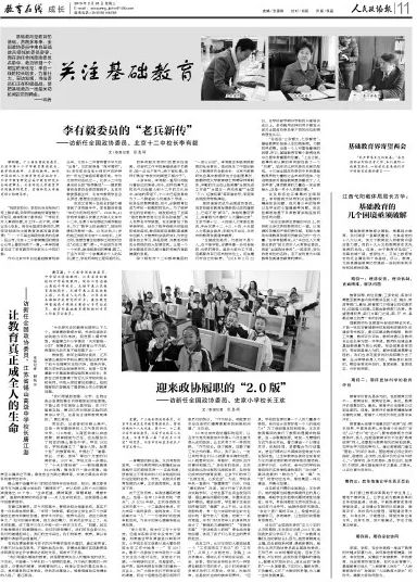 “俗话说‘三岁看大,七岁看老’。基础教育阶段是人生的预备期,习惯的养成期,也是一个人可塑性最强的时期。所以,基础教育在整个教育体系中占据非常重要的位置。”上会之前,做事向来认真的李有毅也做了一个“功课”,她在对比研究委员名单后发现,十三届全国政协委员中来自基础教育界的力量较之去年有所增加,“这说明国家对基础教育更加重视了,‘人多声强’,建言献策的力量也一定会更强大,这是一件令人欣喜的事。”